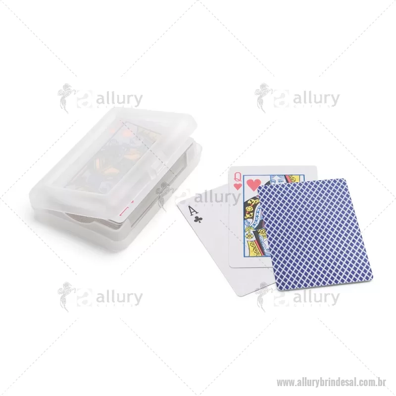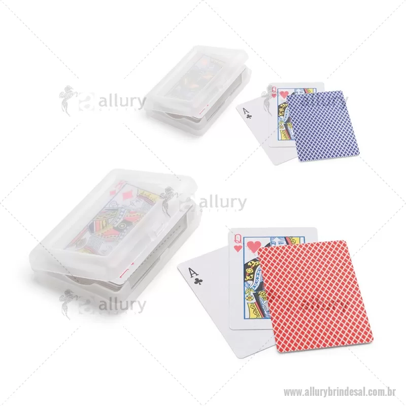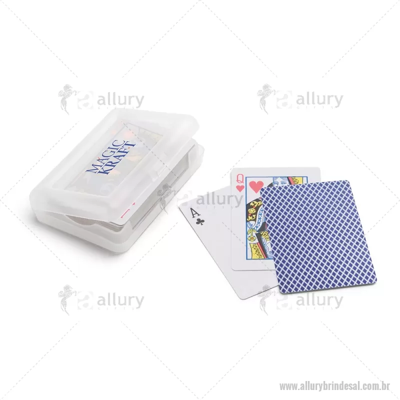 Baralho de 54 cartas em papel plastificado. Fornecido numa caixa rígida / estojo em PP. Medidas: 100 x 70 x 20 mm Peso do Produto (g.): 94 - - ALLALJOG010