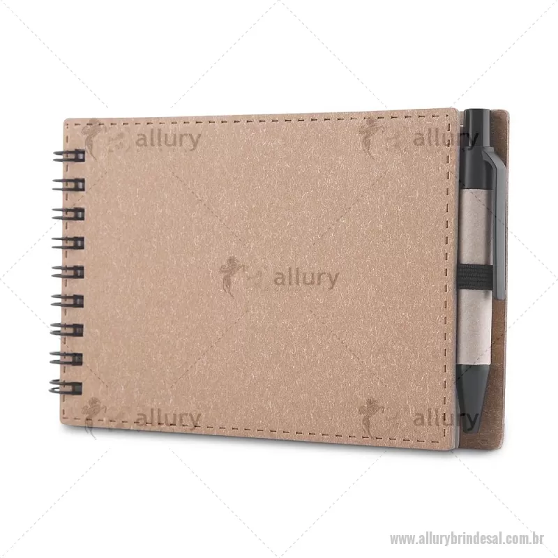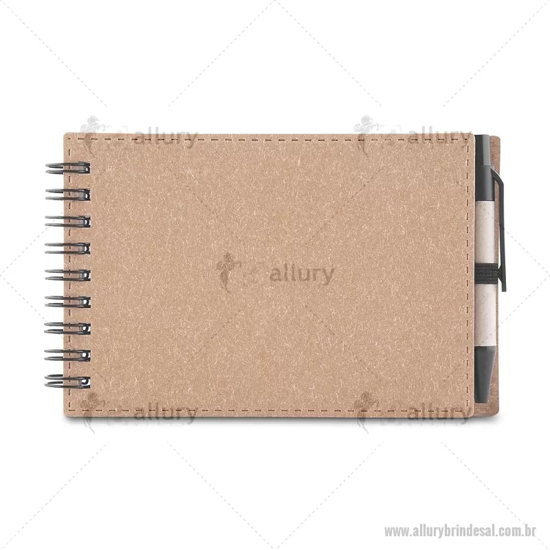 Mini Bloco/ Caderno A6 de anotações com caneta Mini Caderno com capa em papelão e encadernação espiral wire-o, 70 folhas sem pauta em 70g/m². Acompanha caneta confeccionada em papelão reciclado com detalhe em plástico. Dimensão Produto: 14x9cm (Caderno) Dimensão Produto: 8,3xø1cm (Caneta) Peso do Produto: 0,084kg - - ALLALBLC277
