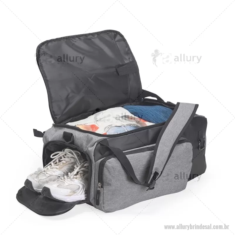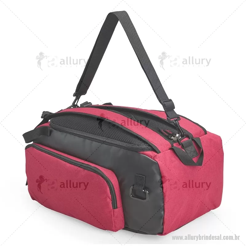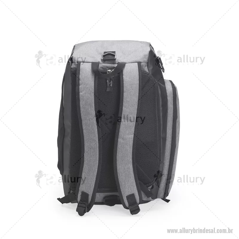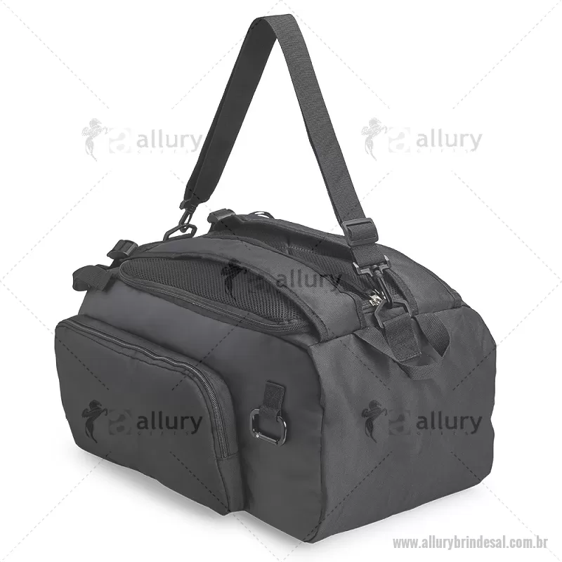 Bolsa esportiva em poliéster resistente à água, com detalhes emborrachados e capacidade de até 40 litros. Possui três compartimentos principais, incluindo bolso para notebook de até 13” e espaço separado para calçados. Conta com bolso lateral em malha, alça transversal ajustável e removível, além de alças acolchoadas e área traseira com espuma respirável, permitindo uso como mochila. - - ALLALBOL050