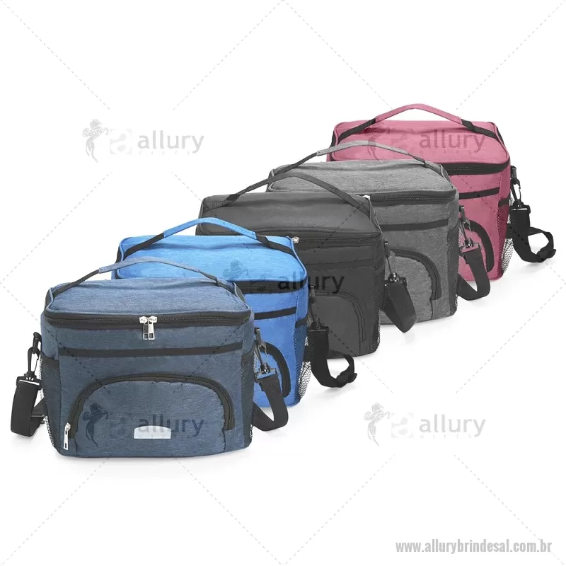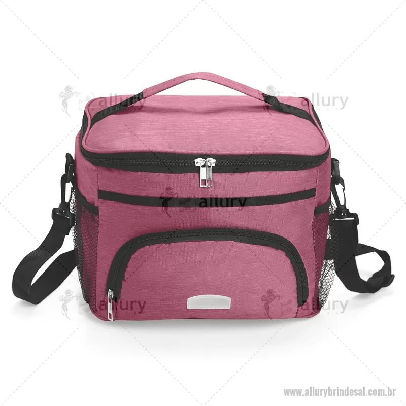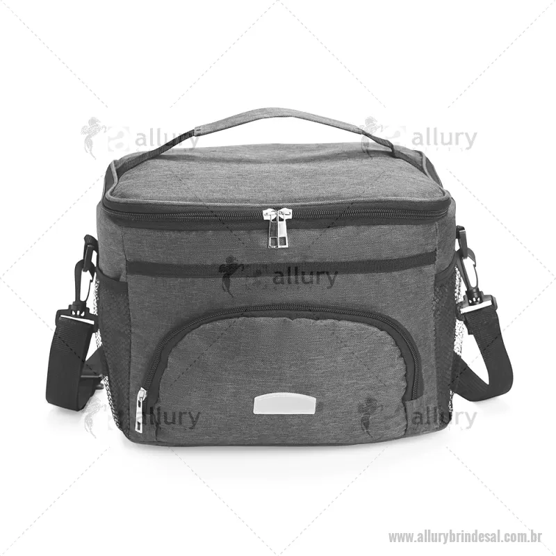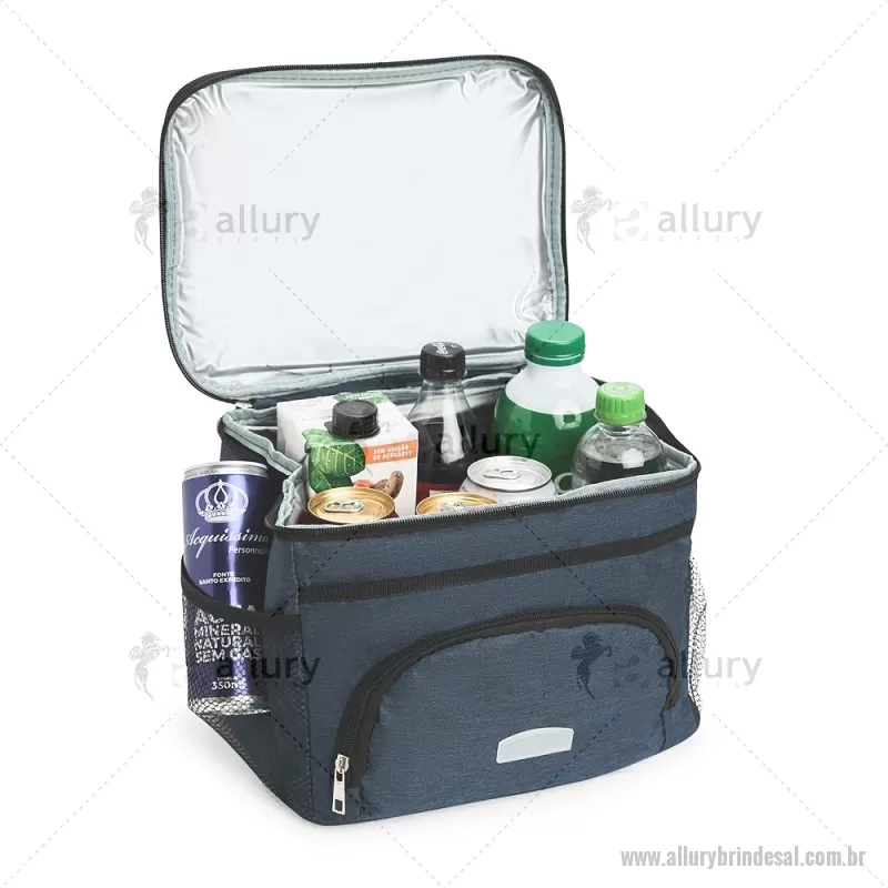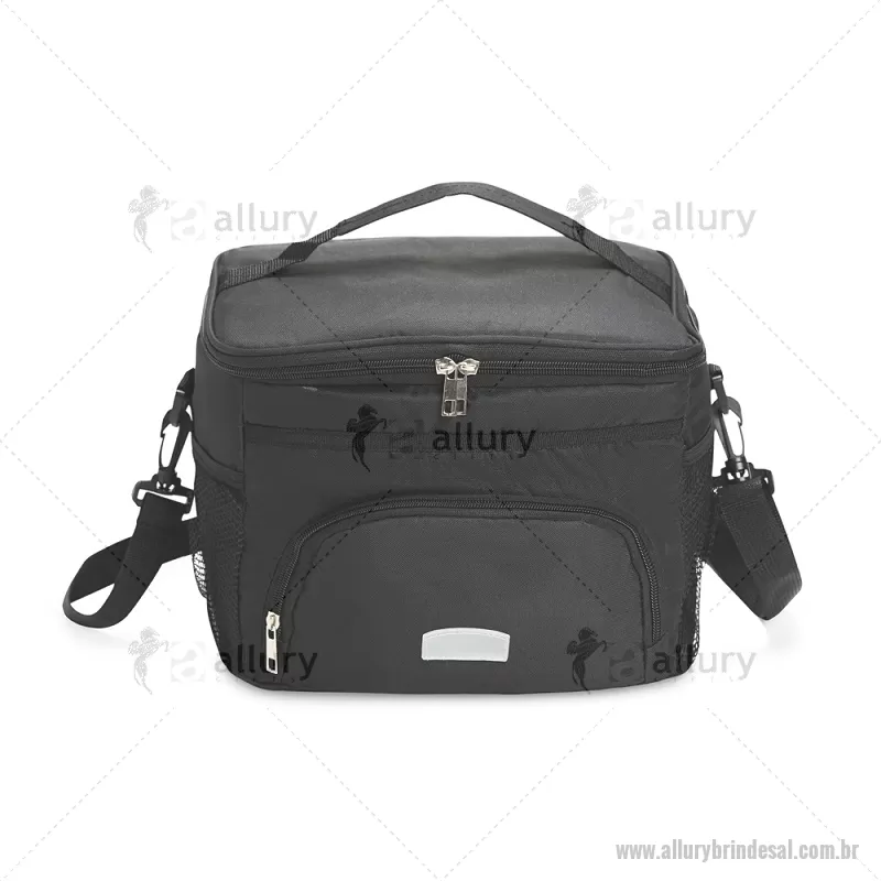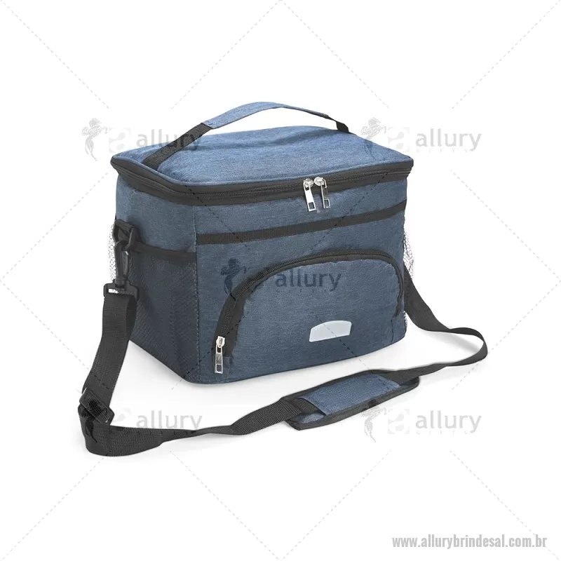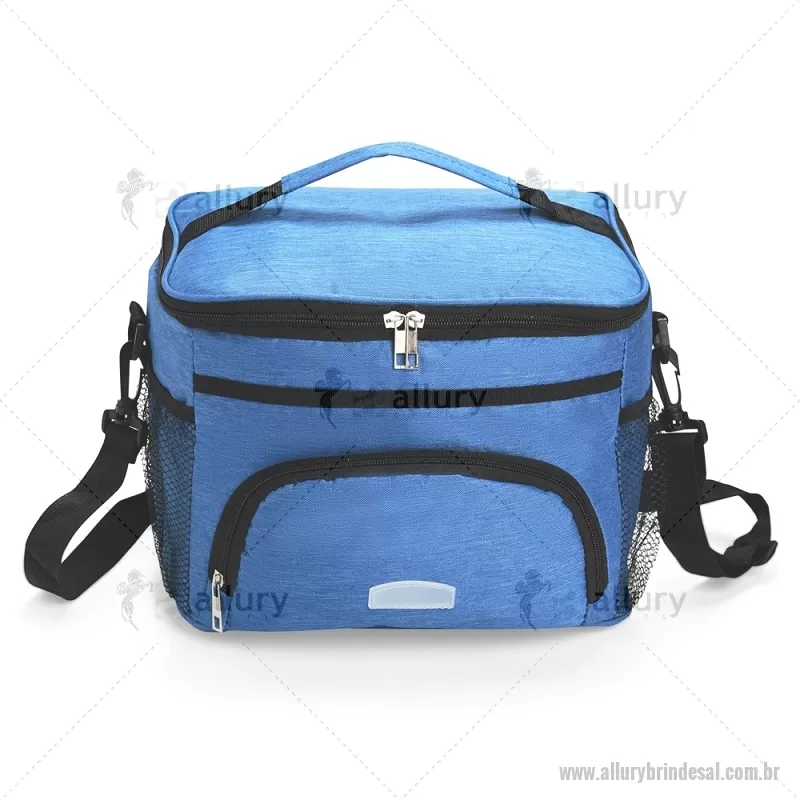 Bolsa térmica de 10 litros feita em poliéster resistente à água, com revestimento interno em PVC laminado. Conta com bolso frontal com zíper, dois bolsos laterais em tela, alça superior fixa e alça transversal removível. Prática e ideal para levar alimentos e bebidas no dia a dia. - - ALLALBT103