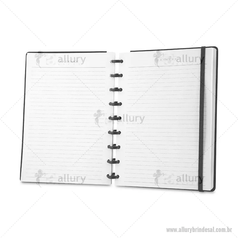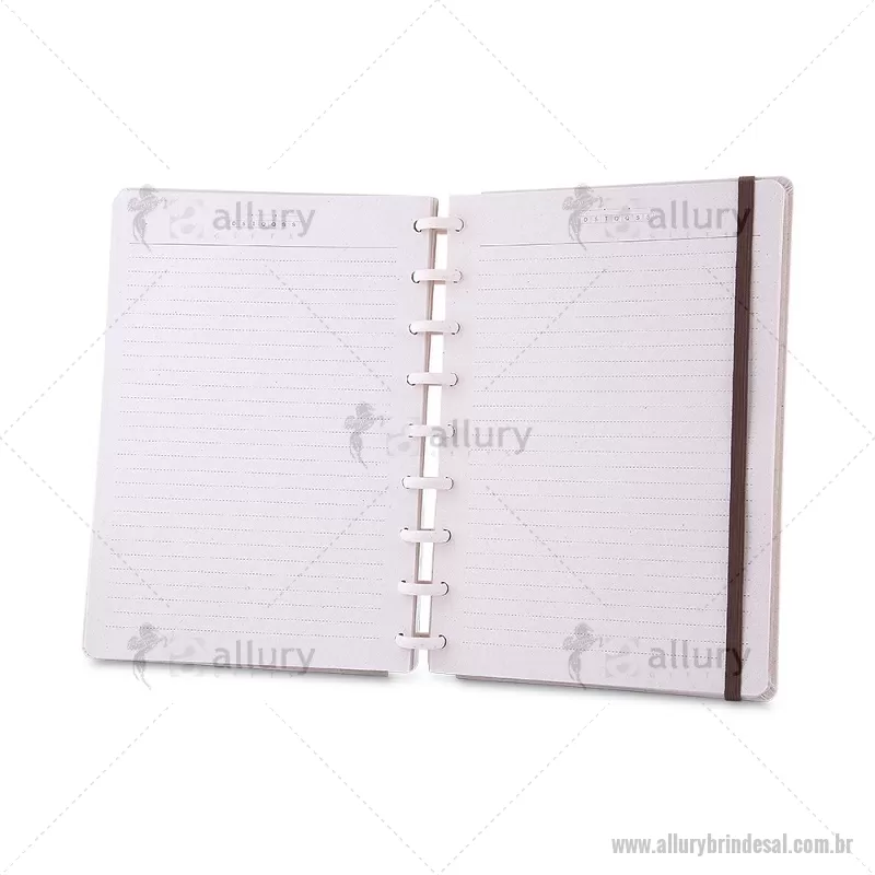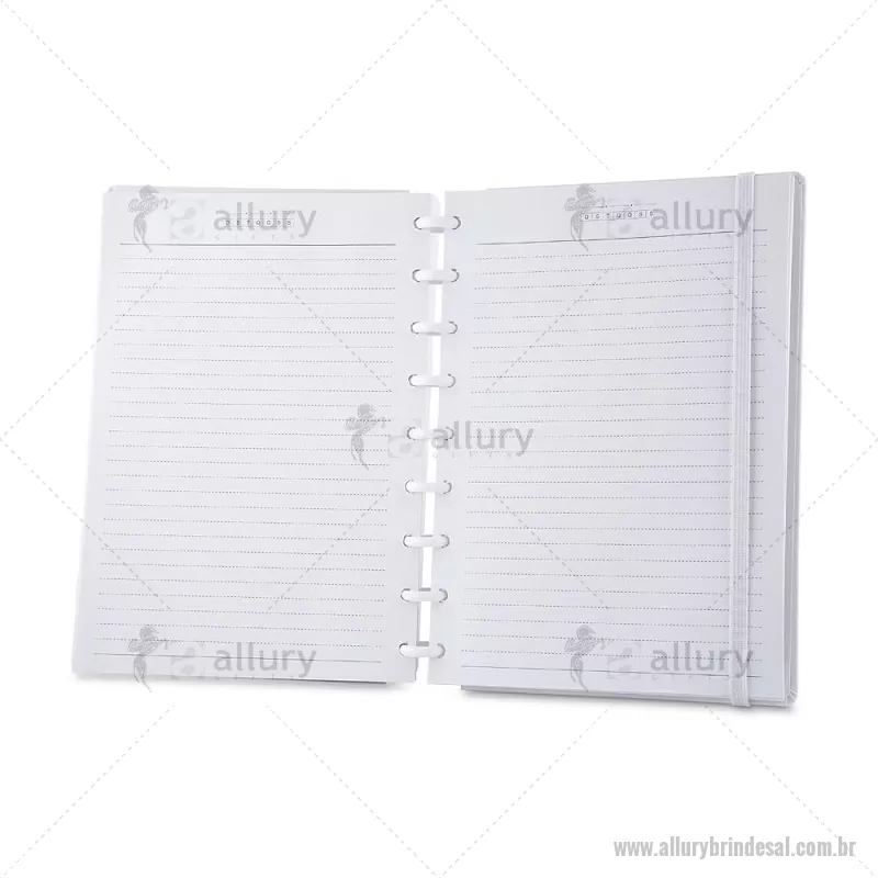Caderno de anotações com folhas removíveis, capa dura cartonada revestida em material sintético, 80 folhas pautadas 75 g/m², calendário anual, manual de instruções, bolso plástico interno para documentos e elástico para fechamento seguro. Peso do Produto: 0,354kg Dimensão do Produto: 23,5x18cm - - ALLALCAD035