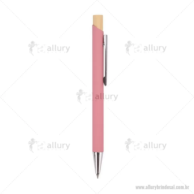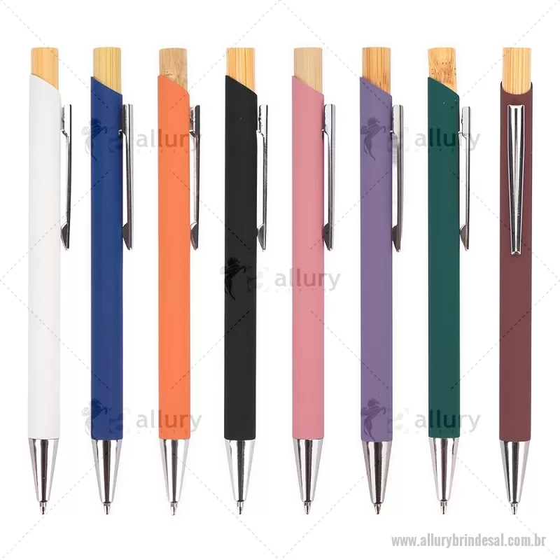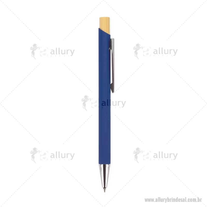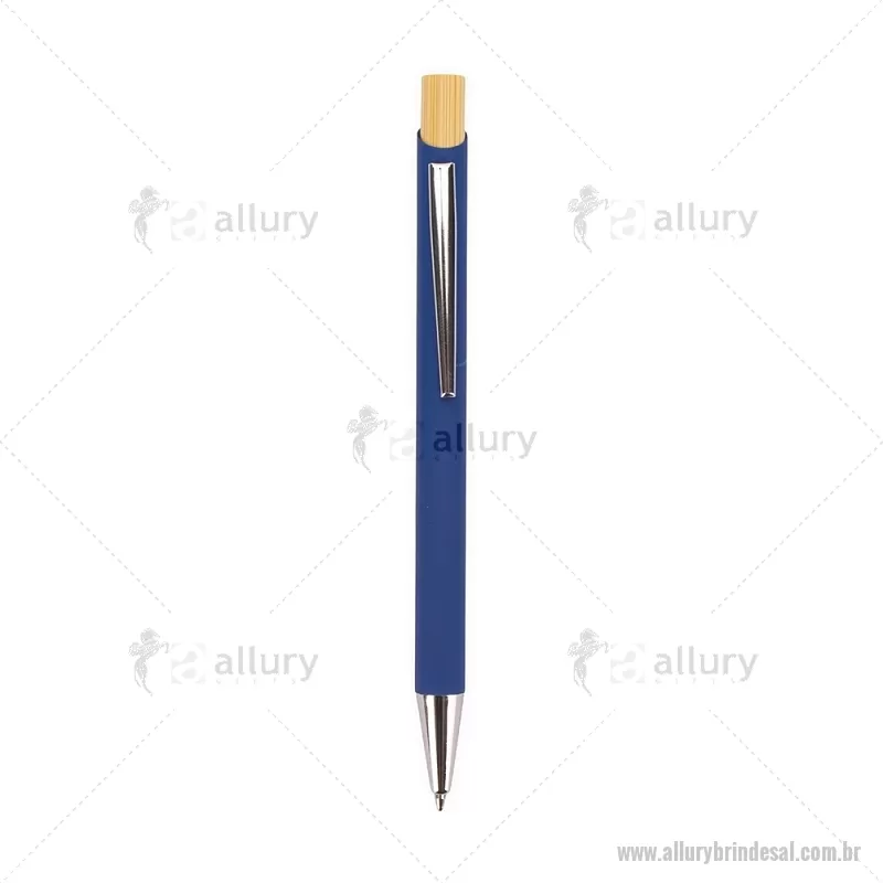 Caneta esferográfica azul 1,0 mm com corpo metálico e acionamento por clique em bambu. Oferece escrita leve, confortável e precisa para o uso diário. - - ALLALCMT297