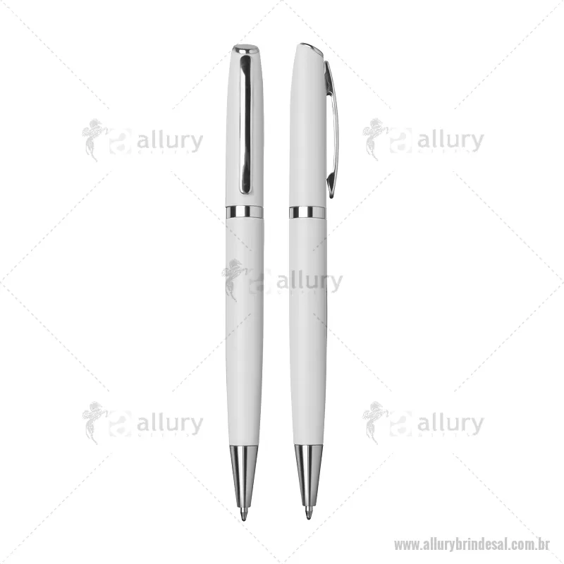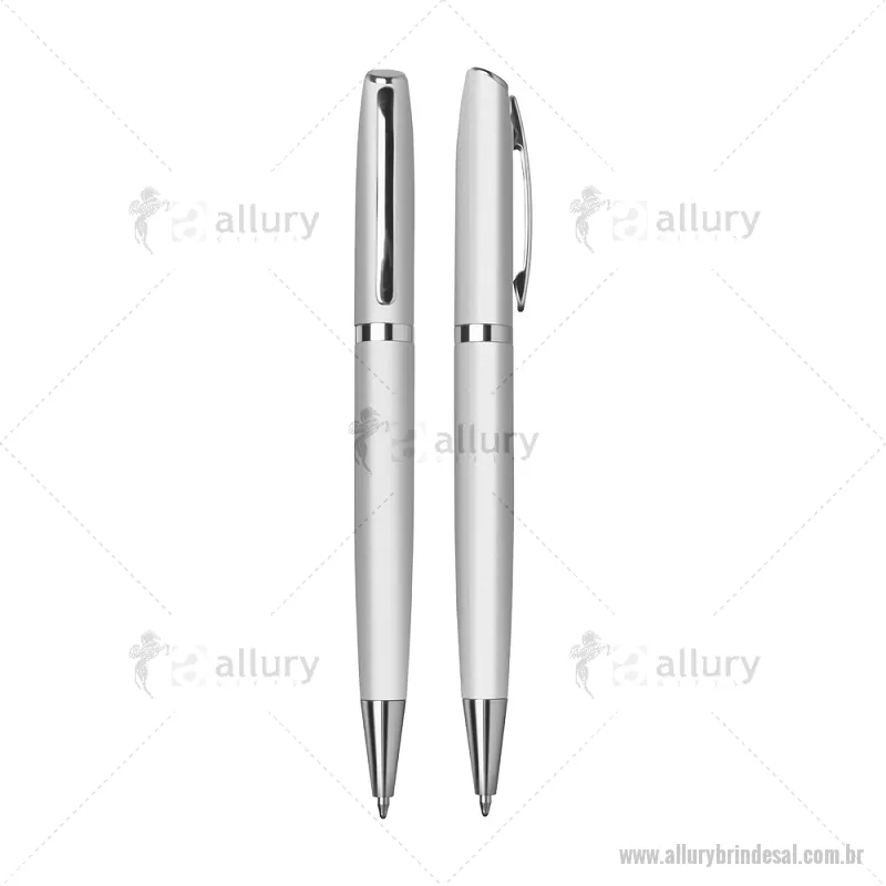 Caneta de Alumínio esferográfica. Acionamento retrátil por giro com detalhe prateado e escrita macia azul. Consultar cores disponíveis. Gravação a laser. - - ALLALCMT086