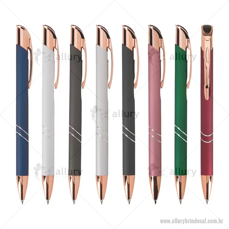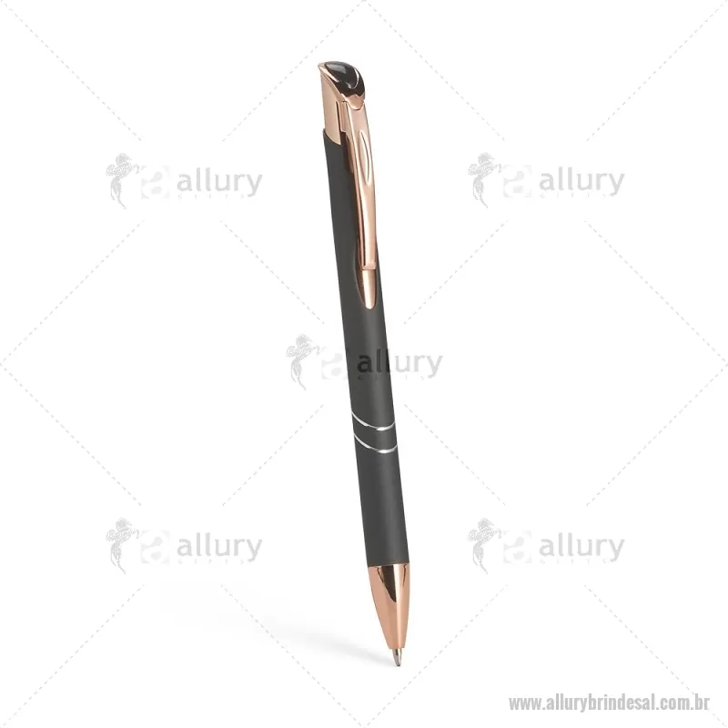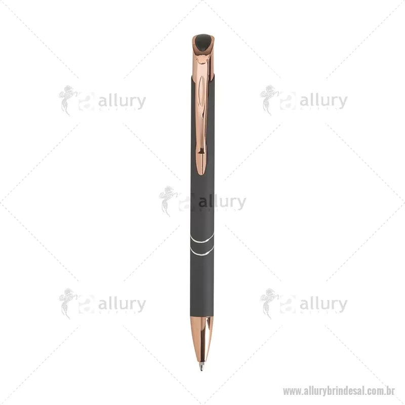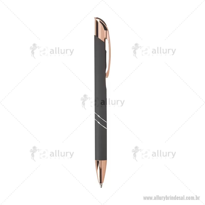 Caneta esferográfica com corpo metálico e detalhes em plástico, acionamento por clique e carga azul de 1,0 mm. Leve e confortável, garante escrita suave e precisa para o uso diário. - - ALLALCMT304