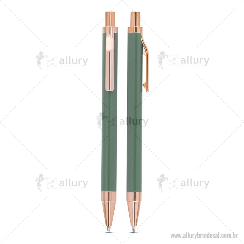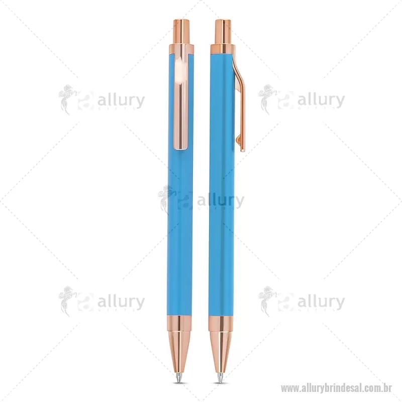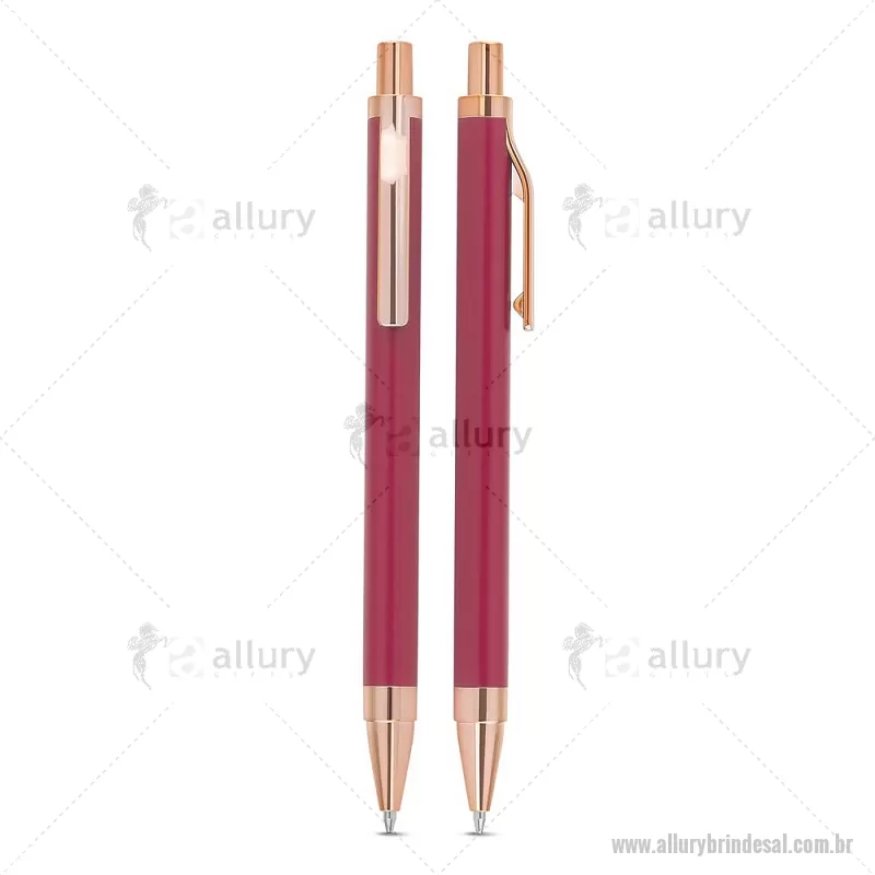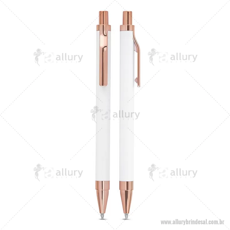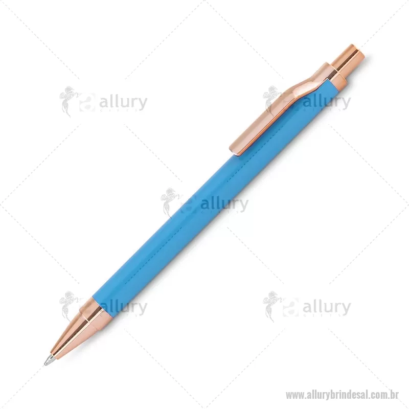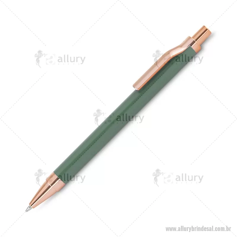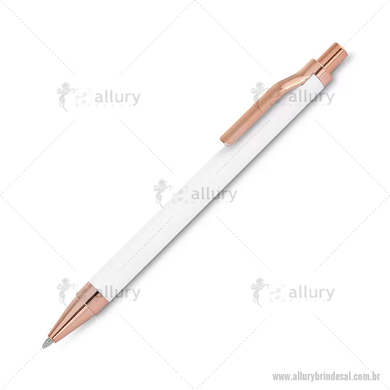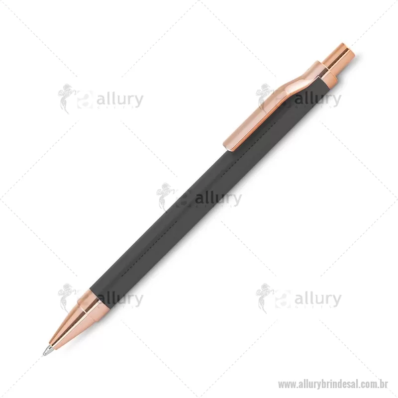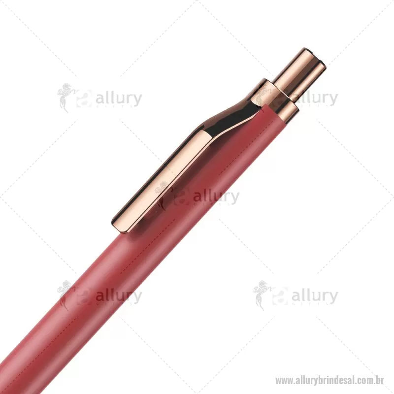 Caneta esferográfica com corpo em alumínio reciclado, acionador e clipe em acabamento rosé/bronze. Peso do Produto: 0,014kg Dimensão do Produto: 13,8xø1cm - - ALLALCMT307
