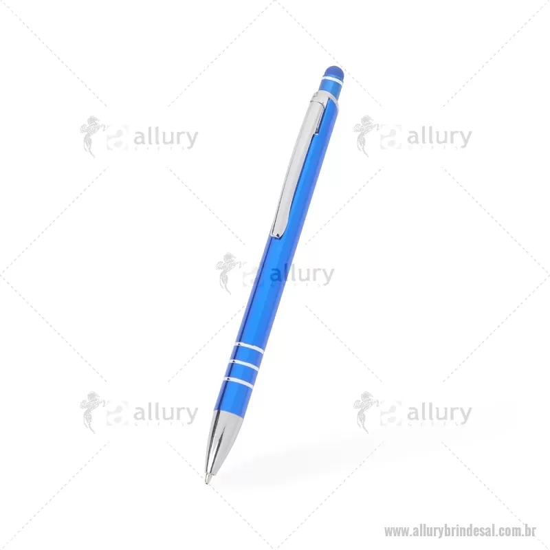 Caneta metálica com acionador touch, clipe metálico e ponteira plástica. Carga esferográfica azul 1.0mm e acionamento por clique. Largura : 1,4 cm x Comprimento : 14,4 cm Peso aproximado (g): 16 - - ALLALCMT289
