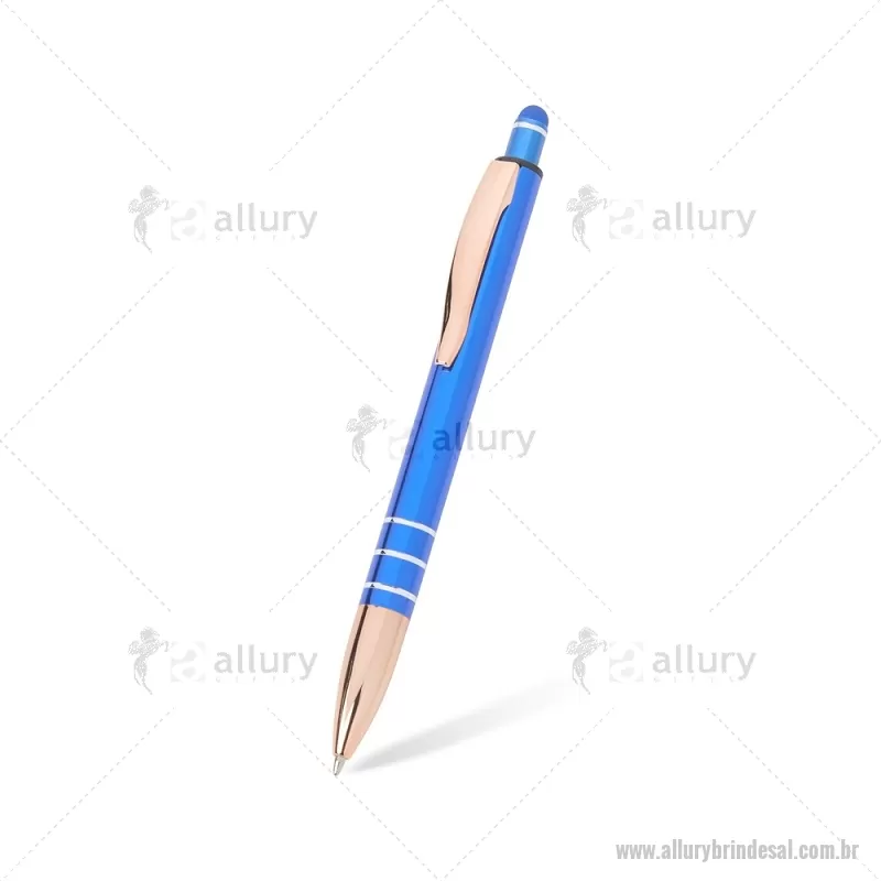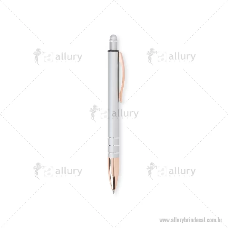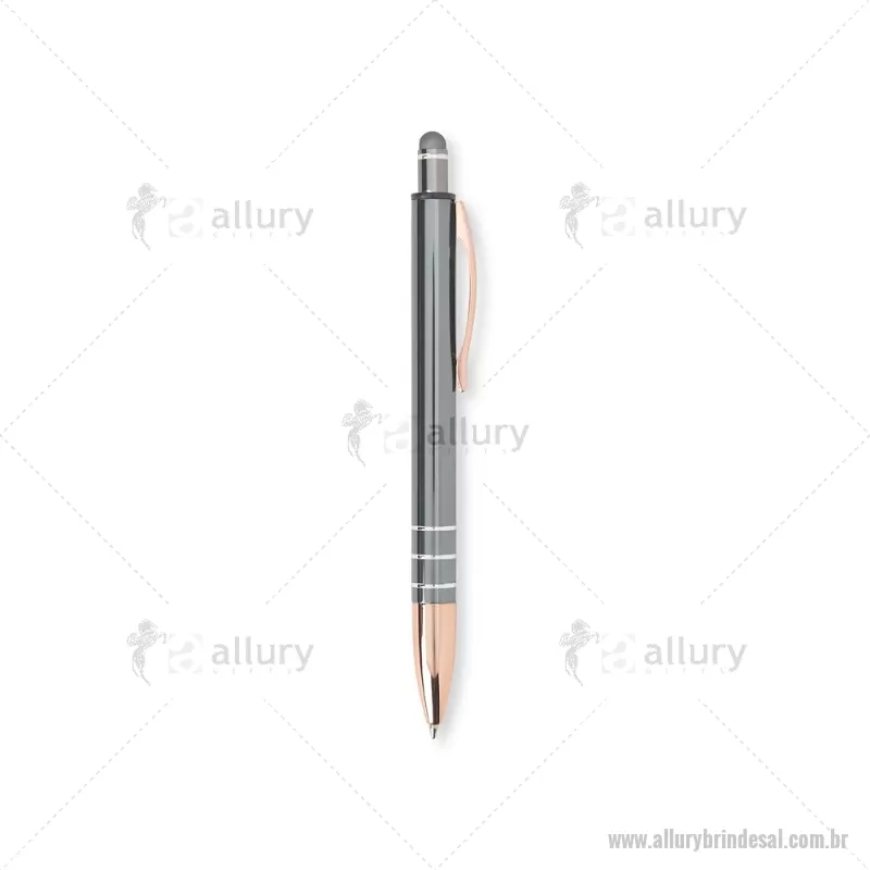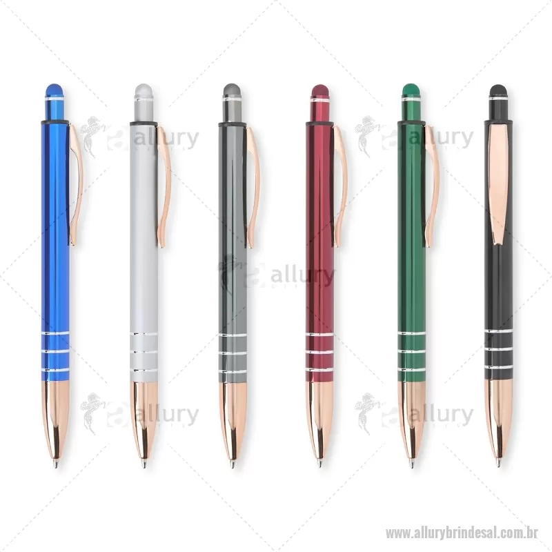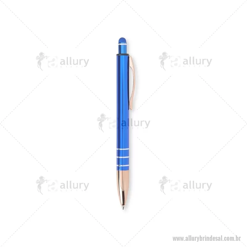 Caneta Metal Touch Caneta metálica com acionador touch, clipe metálico e ponteira plástica. Carga esferográfica azul 1.0mm e acionamento por clique. Largura : 1,6 cm x Comprimento : 14,4 cm Peso aproximado (g): 17 - - ALLALCMT291