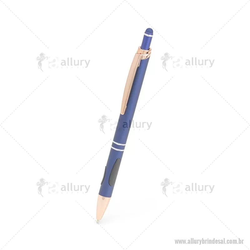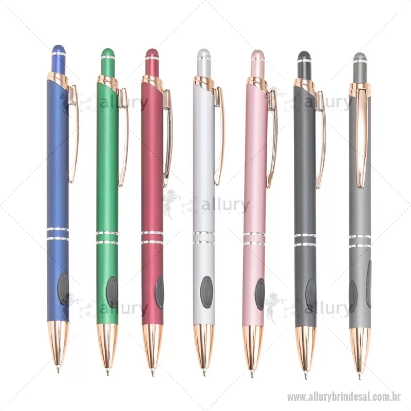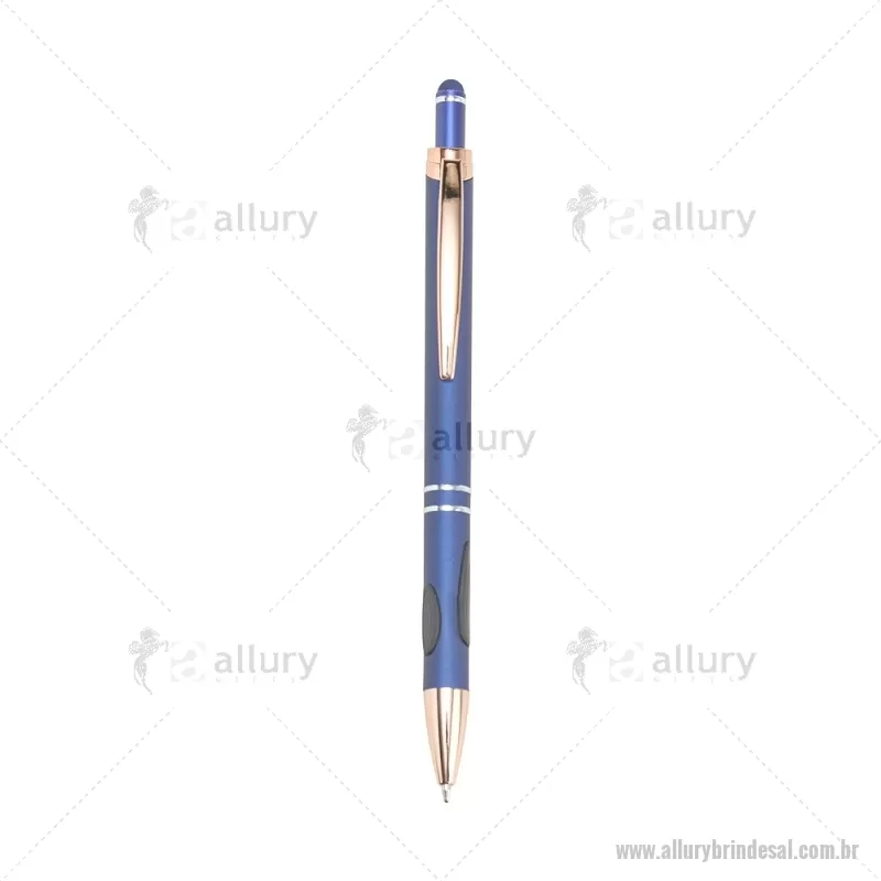 Caneta Metal Touch A elegância e o conforto combinados em uma única caneta esferográfica para garantir uma escrita mais agradável através da sua construção metálica e seu par de grips em borracha, além de ponta e clipe em plástico. Sua carga azul de 1.0 mm possui acionamento por clique com ponteira emborrachada que que permite seu uso como uma caneta touch para interação com smartphones, tablets e demais dispositivos de telas touchscreen. Largura : 1,5 cm x Circunferência : 4,5 cm x Comprimento : 14 cm Peso aproximado (g): 17 - - ALLALCMT293