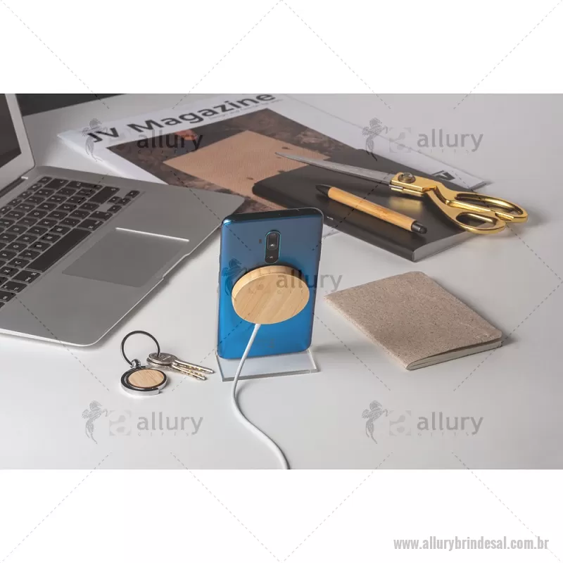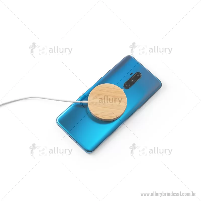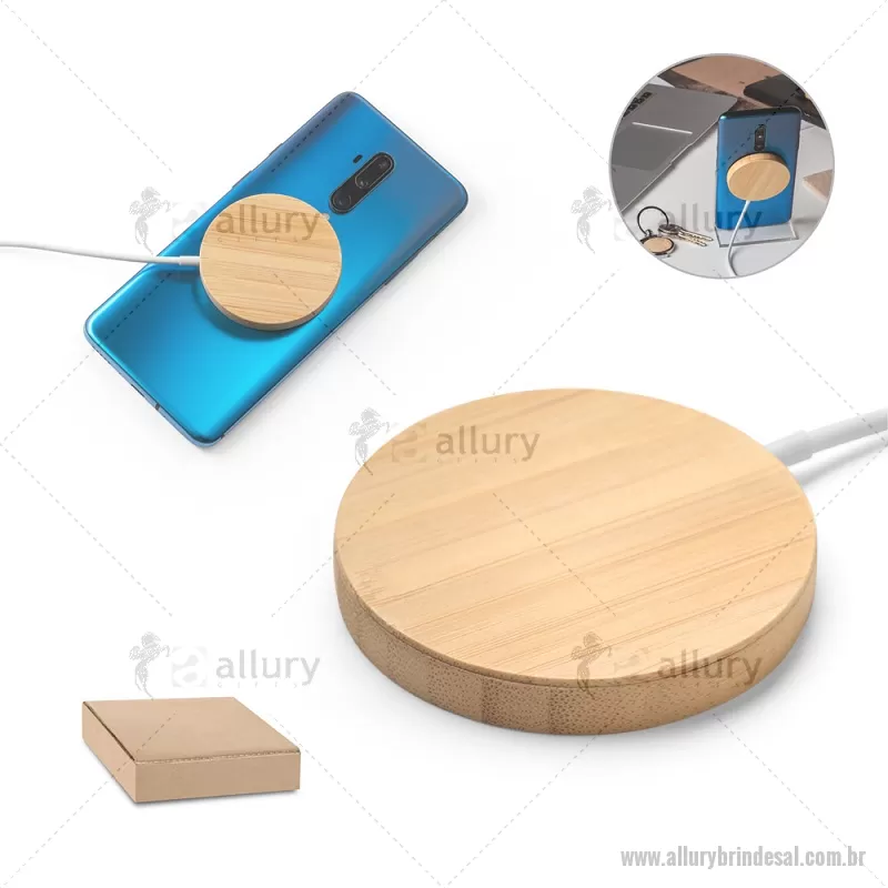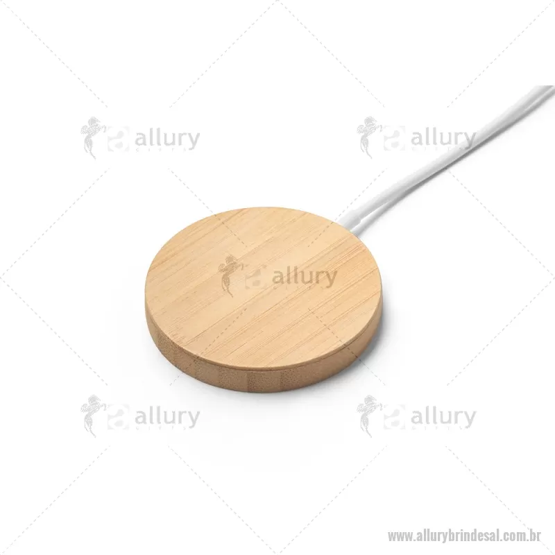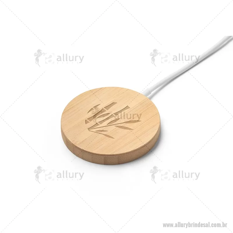 Carregador magnético por indução super-rápido em bambu 15 W Carregador magnético por indução (wireless) super-rápido em bambu. Potência de carregamento super-rápido de 15W. Incluso cabo de carregamento USB-C de 1 metro. Compatível com dispositivos móveis com tecnologia de carregamento sem fios. Fornecido em caixa presente de papel kraft reciclado. A cor e o resultado da impressão nos materiais naturais pode variar entre produtos. Medidas Produto: Ø59 x 8 mm Peso do Produto (g.): 35 - - ALLALTEC533