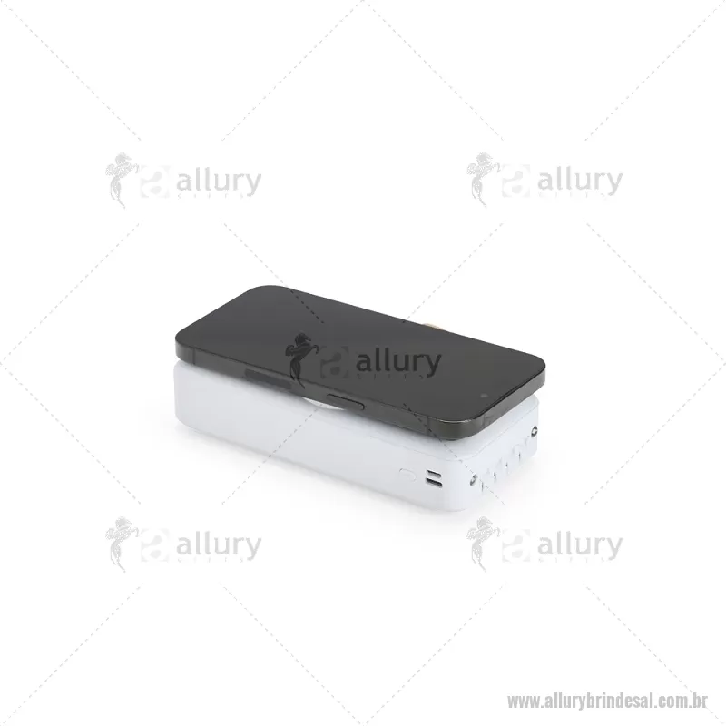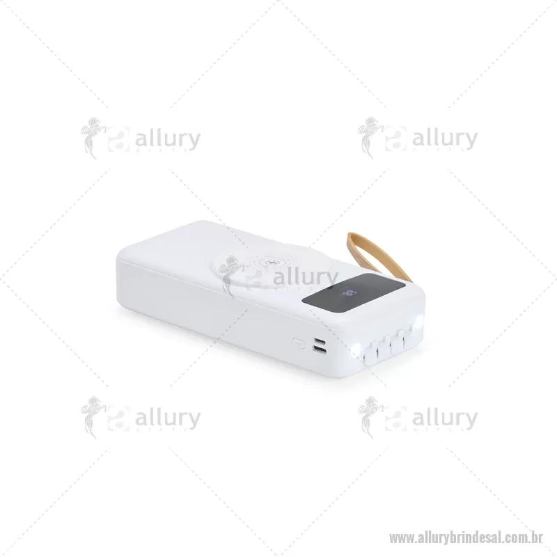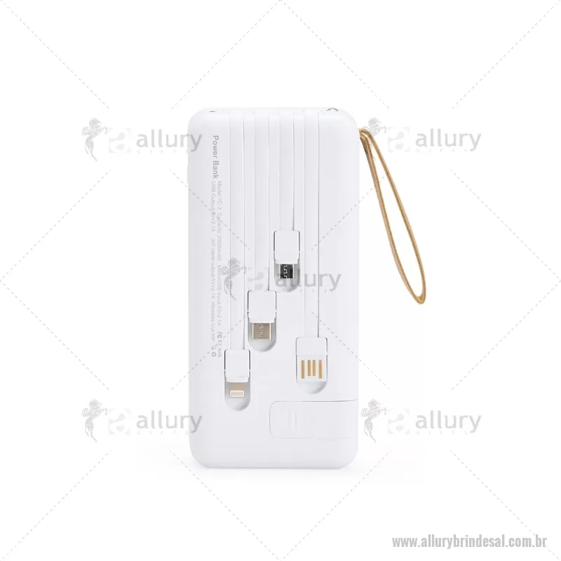 Carregador Power Bank USB 20.000mAh Descrição: Power bank em plástico com capacidade de 20.000mAh, painel de LED que indica o percentual de bateria, alça em couro sintético para transporte e suporte lateral que permite apoiar aparelhos na horizontal. Possui quatro cabos acoplados, incluindo: USB-C, Micro USB, Lightning e Cabo USB, além de espaço reservado para carregamento por indução de aparelhos compatíveis. Dispõe ainda de conexões USB-C, Micro-USB e USB para recarga do próprio dispositivo. Altura : 14,5 cm x Largura : 7 cm x Espessura : 3,5 cm Peso aproximado (g): 424 - - ALLALTEC530