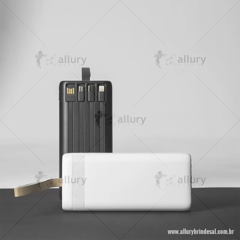 Power Bank 20.000mAh com Lanterna e Multissaídas Descrição: Power bank em plástico com capacidade de até 20.000mAh. Possui quatro cabos integrados com saídas Lightning, USB-C, Micro-USB e USB. Conta ainda com duas entradas, uma USB-A e outra USB-C, painel de LED numérico e lanterna frontal e alça fixa em couro sintético para transporte. Acompanha cabo USB-C. Altura : 15 cm x Largura : 6,8 cm x Espessura : 3 cm Peso aproximado (g): 418 - - ALLALTEC532