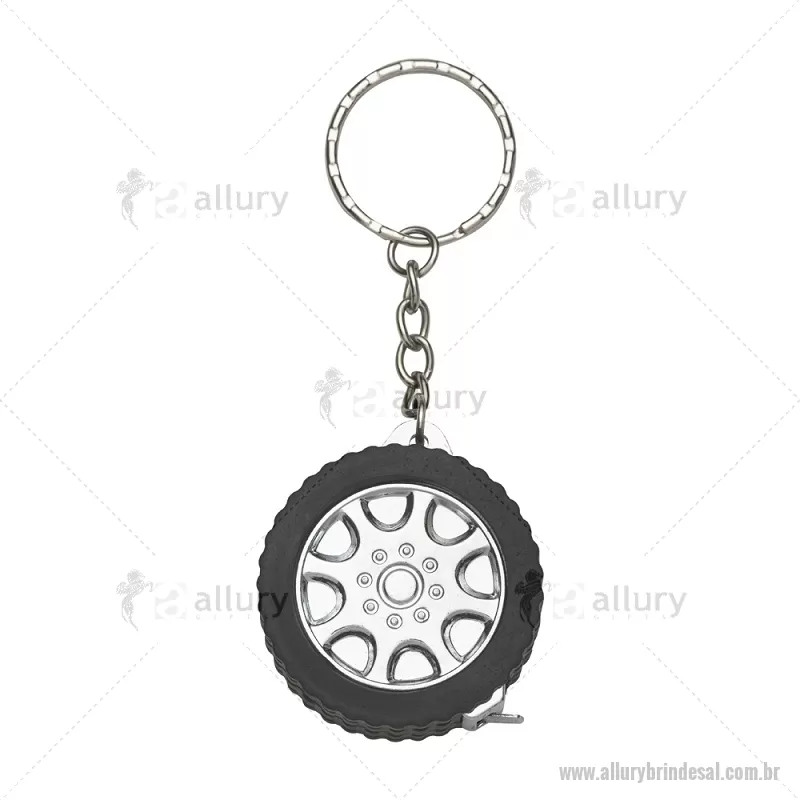 Chaveiro Plástico Trena 1 Metro Descrição: Chaveiro plástico em formato de pneu de carro e argola metálica. Possui uma trena com fita de alcance máximo de 1 metro, além de exibir suas medidas em pés e polegadas. Largura : 4,1 cm x Espessura : 1,6 cm x Comprimento : c/ argola: 10cm Tamanho total aproximado (CxL): 10,1 cm x 4,1 cm Peso aproximado (g): 24 - - ALLALFTR020