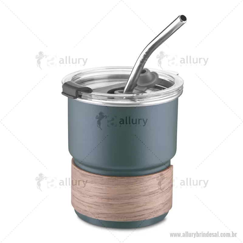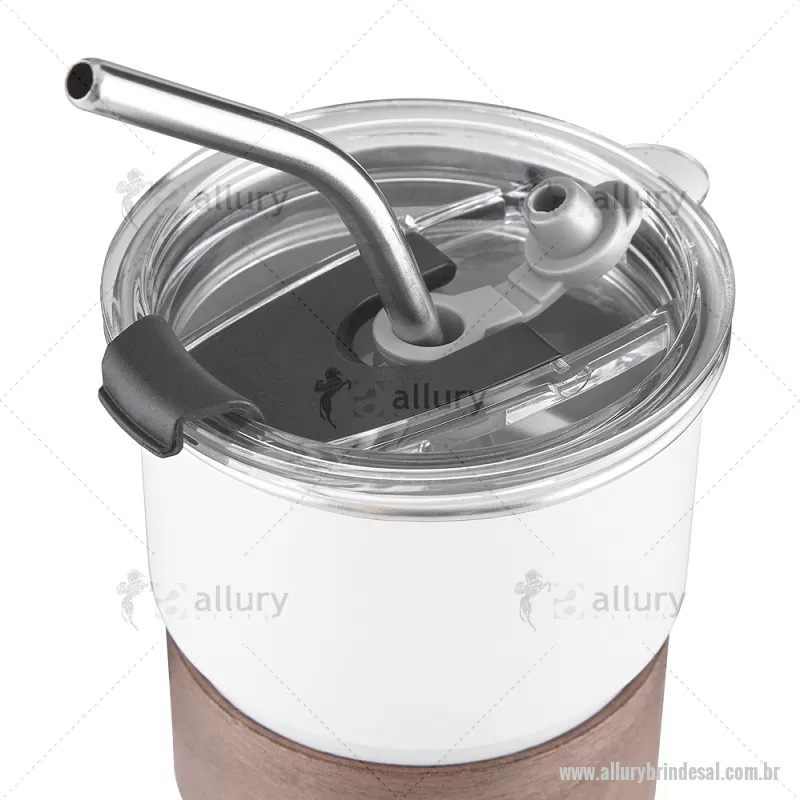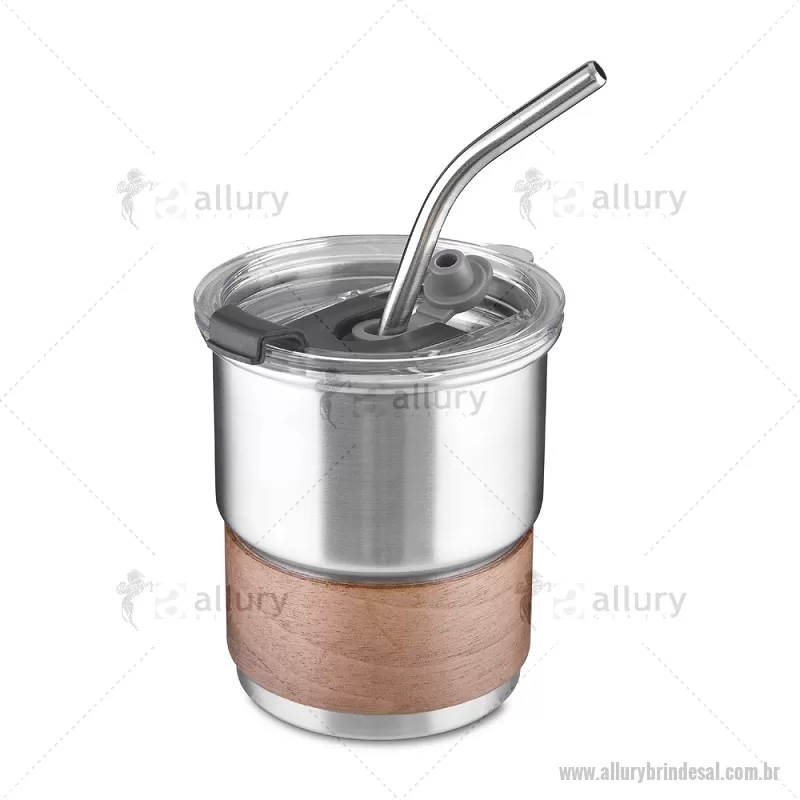 Copo em inox com Canudo Copo de parede simples em aço inox 304 com capacidade de 250ml, com canudo em inox. Tampa em plástico poliestireno (PS) que também possui um bico como forma alternativa de uso. Com pegador em fibra de noz. Possui acabamento externo com pintura fosca. Peso do Produto: 0,100kg Dimensão do Produto: 9xø7,5cm - - ALLALCPO150