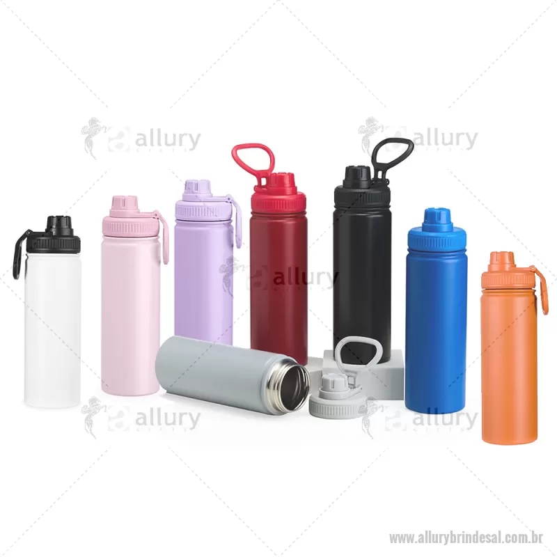 Garrafa Inox 750ml Conta com pintura eletrostática, que oferece uma cor duradoura e acabamento de maior qualidade e resistência. Possui tampa rosqueável em plástico com proteção para o bocal e alça para transporte. Altura : 24 cm x Circunferência : 23 cm x Comprimento : 7,5 cm Peso aproximado (g): 175 - - ALLALGAR154