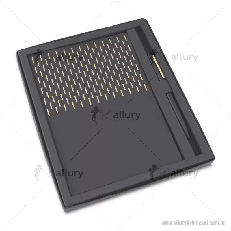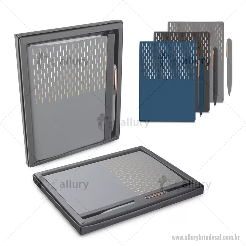 Kit Escritório A5 Capa em PU e Caneta Metalica Conjunto composto por caderno com capa em PU com detalhe de gravação dourada, contendo 80 folhas pautadas em papel 70g/m², possui caneta modelo twist em alumínio reciclado na cor do caderno, com acabamento em detalhe rosê, possui estojo em papelão na cor preta. Peso do Produto: 0,071kg (Caixa) Peso do Produto: 0,207kg (Caderno) Peso do Produto: 0,019kg (Caneta) Dimensão do Produto: 23,4x20cm (Caixa) Dimensão da Produto: 21x14,7cm (Caderno) Dimensão da Produto: 14xø1cm (Caneta) - - ALLALKES080