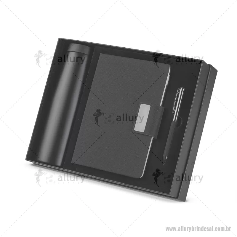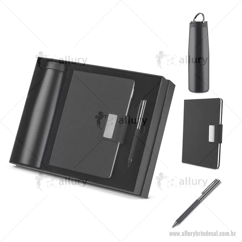 Kit escritório Caderno, Garrafa e Caneta Metalica Conjunto composto por caderno em material RPET com fechamento magnético,com 100 páginas, caneta modelo twist com detalhe em tecido RPET preto e garrafa de parede dupla em inox (304 interno e 201 externo), com capacidade de 550ml. Acompanha caixa presenteável. Peso do Produto: 0,256kg (Caderno) Peso do Produto: 0,277kg (Garrafa) Peso do Produto: 0,019kg (Caneta) Peso do Produto: 0,491kg (Caixa) Dimensão do Produto: 23,5x7,1cm (Garrafa) Dimensão do Produto: 21x14,5cm (Caderno) Dimensão do Produto: 7,6x30x24,7cm (Estojo presenteável) - - ALLALKES083