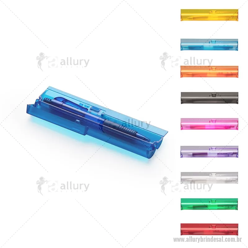 Kit Escritório Caneta esferográfica azul 1,0 mm com acionamento por clique e grip emborrachado, oferecendo escrita confortável e precisa. - - ALLALKES079