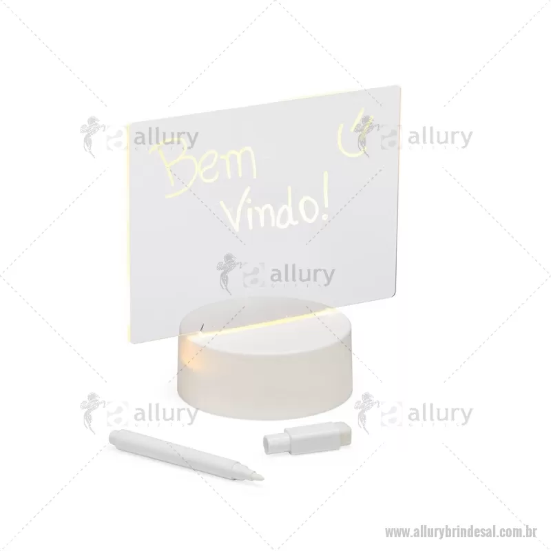 Luminária de Mesa Led Deixe qualquer espaço mais aconchegante e repleto de recadinhos incríveis com a nossa luminária. Com sua tela acrílica 3D, é possível soltar a criatividade e deixar mensagens inspiradoras, lembretes importantes ou até desenhos fofos, tudo de um jeito prático e super divertido! Com um funcionamento super simples, ela se conecta com cabo via USB integrado à base plástica ou por meio de 3 pilhas AAA (1.5V) não inclusas. Além disso, acompanha uma caneta plástica com apagador integrado, tornando a experiência ainda mais interativa e funcional. Essa luminária é perfeita para iluminar o ambiente e deixar recadinhos incríveis do seu jeito! Altura : 15,3 cm x Largura : 15 cm x Profundidade : 8,6 cm Tamanho total aproximado (CxL): Caneta: 11,2 cm x 1,2 cm Peso aproximado (g): 128 - - ALLALLL031