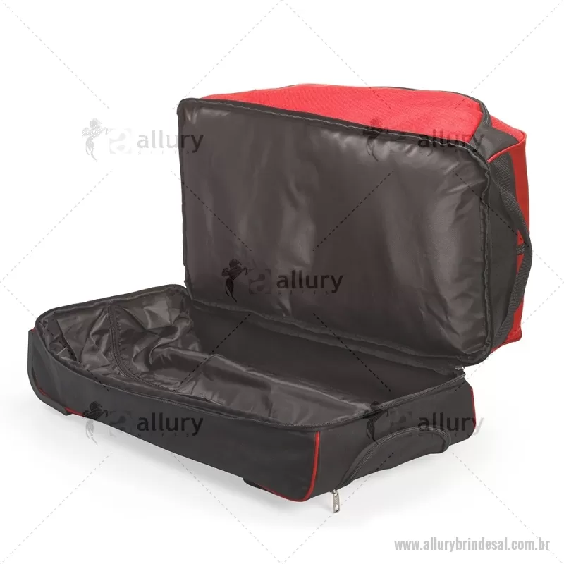Mala versátil com capacidade de 51 litros, confeccionada em poliéster resistente à água. Possui quatro compartimentos funcionais, incluindo um espaço específico para armazenar o puxador. Oferece praticidade no transporte com alças de mão com fecho em velcro, puxador retrátil e duas rodinhas, além de contar com base reforçada e pés de apoio para maior estabilidade. Ideal para o dia a dia ou viagens curtas. - - ALLALMC251