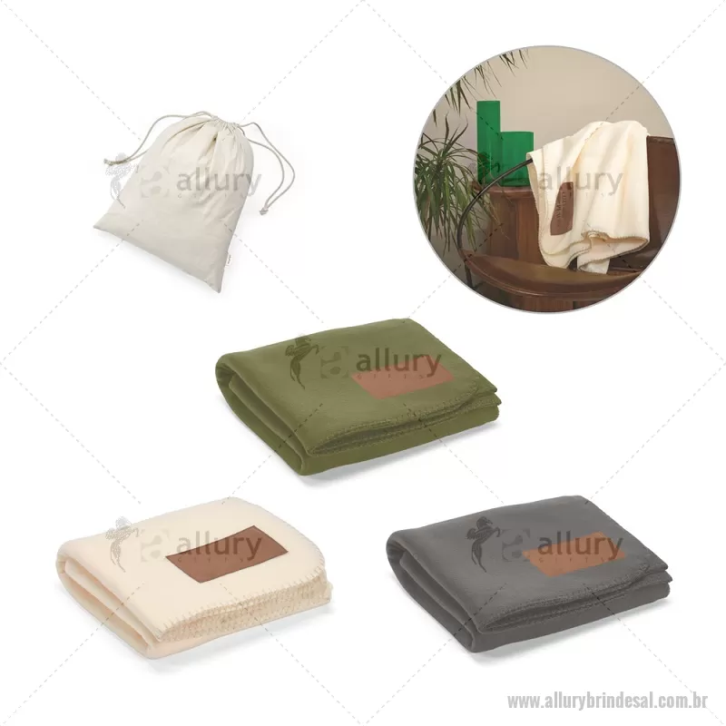 Manta em tecido polar, 100% poliéster reciclado (100% rPET), com área para personalização em microfibra. Fornecido em saco de tecidos 100% reciclado (70% algodão reciclado e 30% poliéster reciclado), com gramagem de 140 g/m². Medidas: 1600 x 1200 mm | Saco: 400 x 320 mm Peso do Produto (g.): 620 - - ALLALMAT007