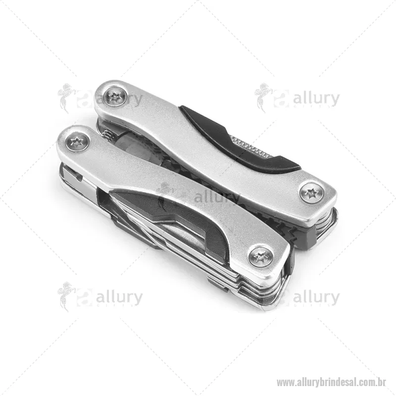 Mini alicate multifunções dobrável em aço inox e alumínio com 9 funções Incluso 9 funções: alicate, lâmina de serra, 2 abridores, parafuso com a cabeça cruzada, faca, chave de fendas de cabeça plana (grande e pequena) e lima de unhas. Fornecido em bolsa de 600D. Fechado: 35 x 70 x 18 mm | Bolsa: 50 x 90 x 20 mm Peso do Produto (g.): 92 - - ALLALCVT029