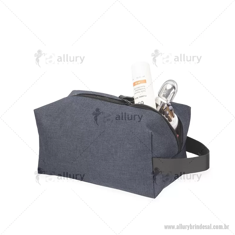 Nécessaire em nylon resistente à água, com fechamento em zíper e puxador funcional. Possui alça lateral em couro sintético, facilitando o transporte e tornando o uso mais prático no dia a dia ou em viagens. - - ALLALNC151