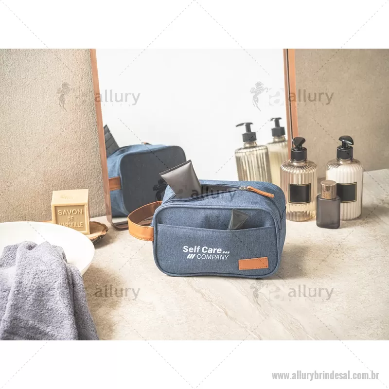 Nécessaire para cosméticos em 600D de alta densidade e pega em PU Bolsa de cosméticos em 600D de alta densidade e pega em PU. Contém bolso frontal com zíper e placa em PU. Medidas: 220 x 130 x 130 mm Peso do Produto (g.): 126 - - ALLALNC142