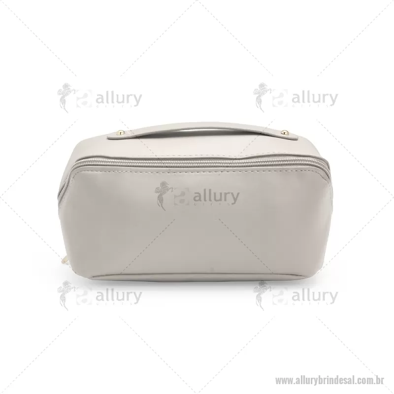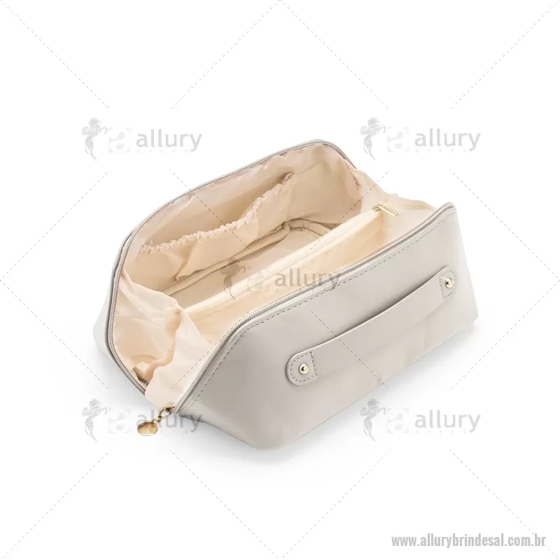 Nécessaire em (PU) poliuretano impermeável com abertura em 180 graus inspirada no formato de concha. O compartimento interno conta com dois bolsos laterais abertos e um, localizado na parte central, com fechamento em zíper. Possui alça para transporte. Altura : 11 cm x Largura : 22,5 cm x Profundidade : 9,5 cm Peso aproximado (g): 108 - - ALLALNC143