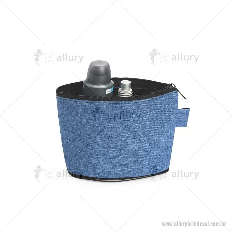 Nécessaire em poliéster com mescla de PVC, resistente à água e com fechamento em zíper. Possui pequena alça lateral, ideal para prender chaveiros ou ganchos, oferecendo praticidade no uso diário. - - ALLALNC148