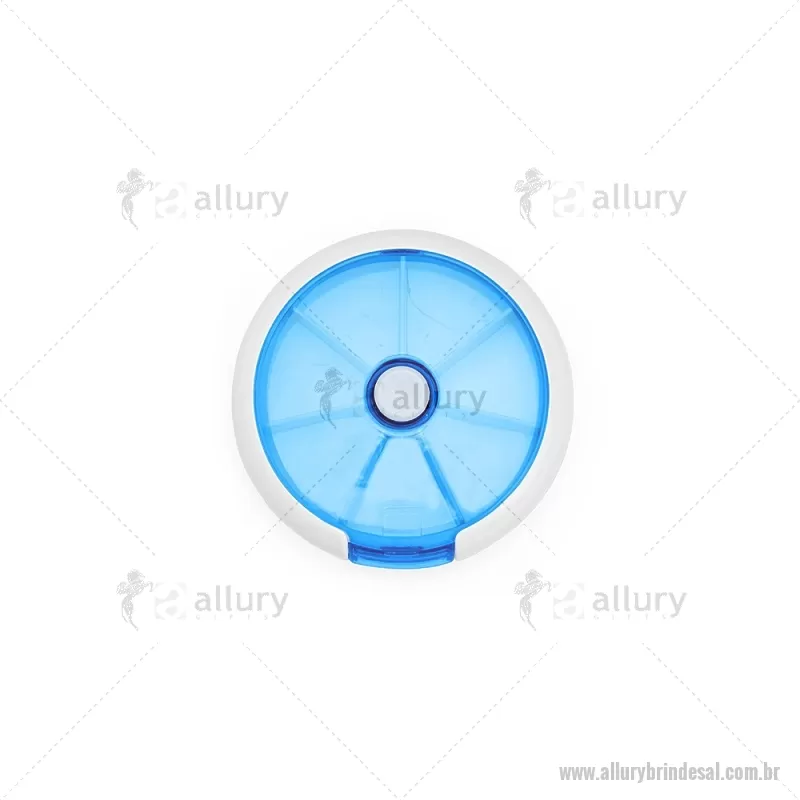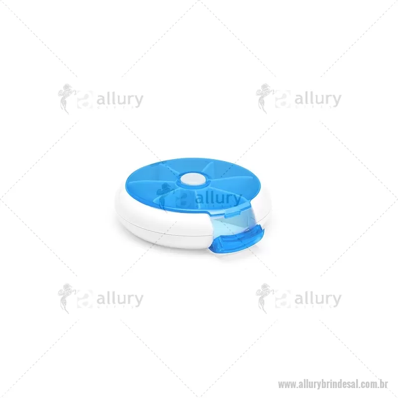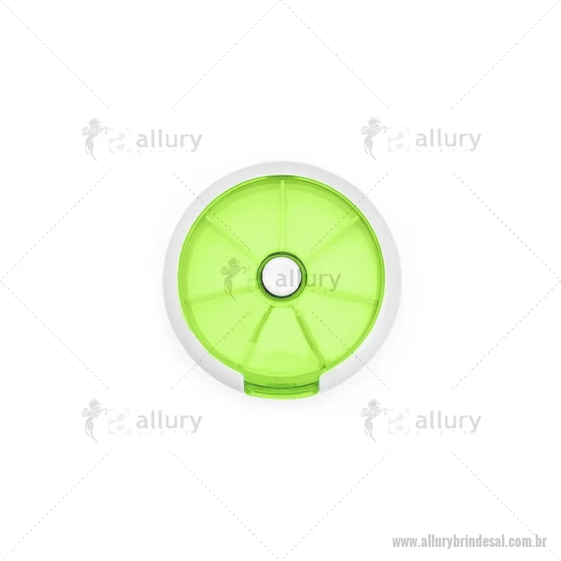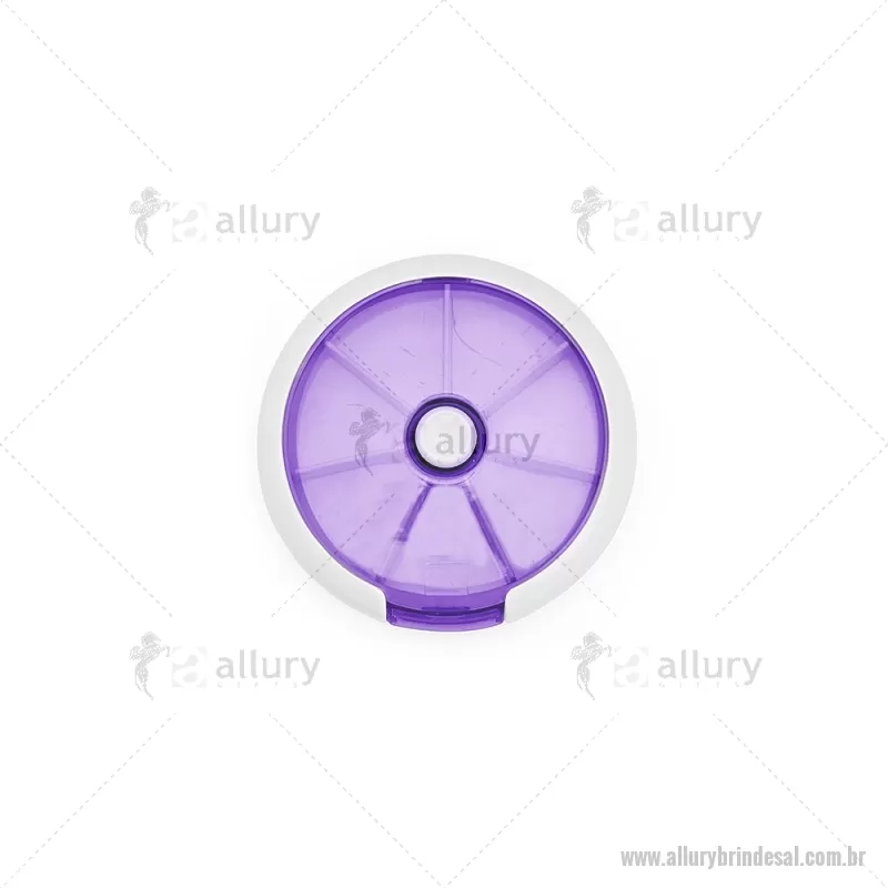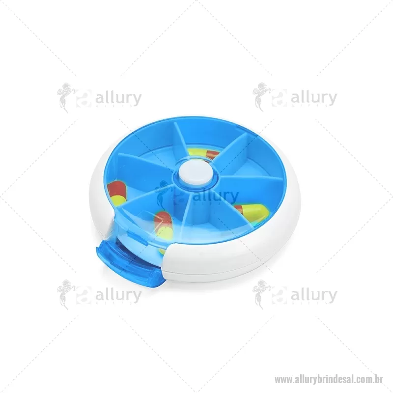 Porta-Comprimidos Plástico Descrição: Porta-comprimidos em plástico. Com design compacto, possui sete divisórias e um botão de acionamento que movimenta o mecanismo de giro de compartimentos a cada clique.permitindo o acesso ao conteúdo por meio de uma abertura lateral. Largura : 9 cm x Espessura : 2,6 cm x Comprimento : 9 cm Peso aproximado (g): 50 - - ALLALPCP018