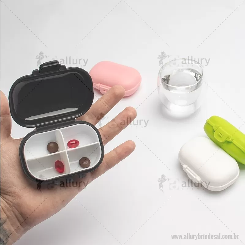 Porta-Comprimidos Plástico Descrição: Porta-comprimidos feito em plástico. Possui compartimento removível com quatro divisórias, o que facilita a limpeza e ajuda a organizar medicamentos ou pequenos objetos. Largura : 6,5 cm x Espessura : 3,7 cm x Comprimento : 9,6 cm Peso aproximado (g): 36 - - ALLALPCP019