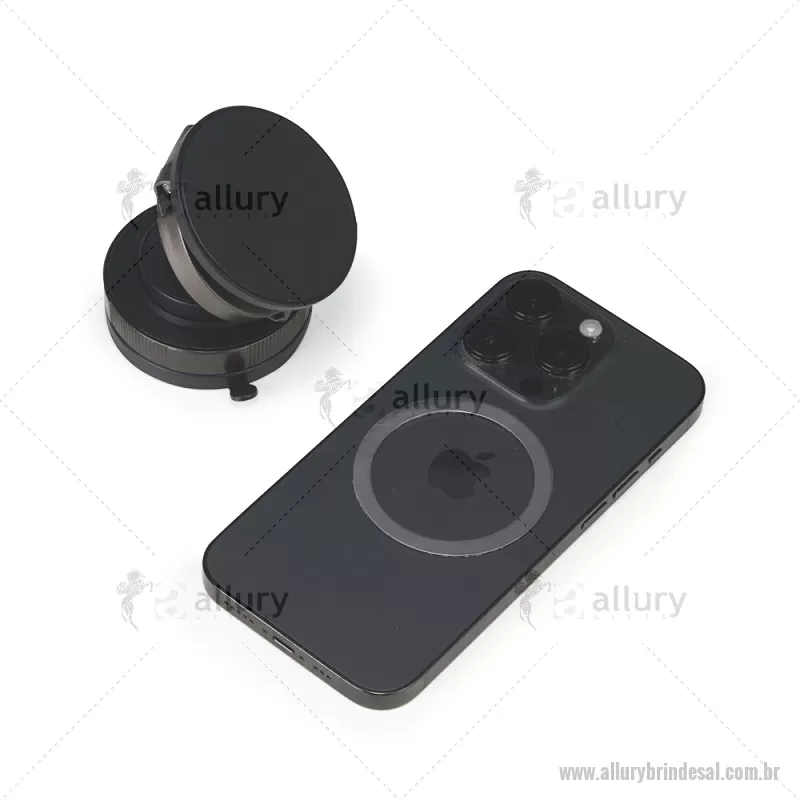 Suporte Magnético Para Celular Suporte magnético em plástico ABS com articulação em diferentes ângulos e rotação de 360 graus no próprio eixo. Possui superfície magnética para fixação de aparelhos na vertical ou horizontal, compatível com dispositivos magnéticos ou com o anel adaptador incluso. Conta com mecanismo giratório para pressão da ventosa em superfícies lisas. Acompanha anel magnético adesivo, placa plástica com adesivo, kit de lenços e chave Allen. Altura : 3,1 cm x Largura : 6 cm x Circunferência : 18,8 cm /br> Peso aproximado (g): 76 - - ALLALTEC546